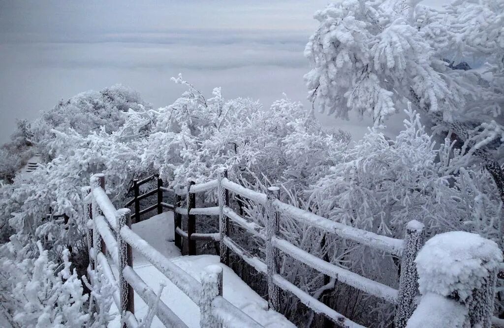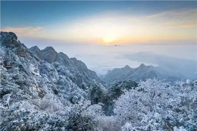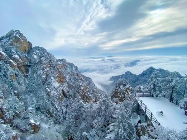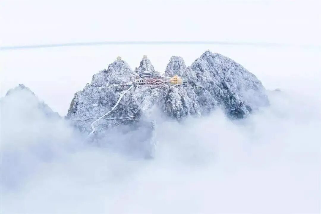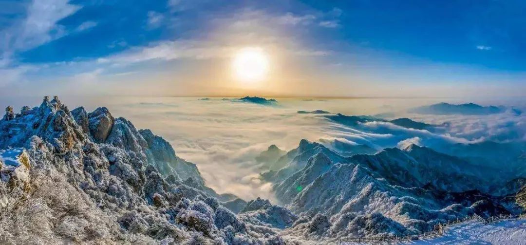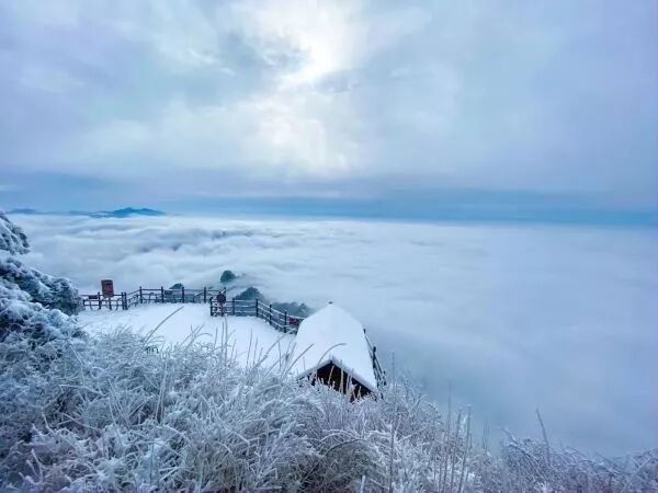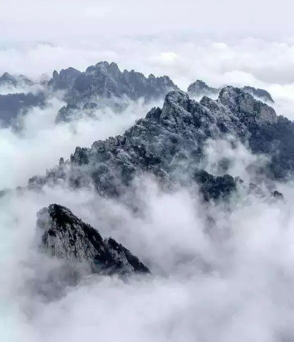 大小山峰、千沟万壑都淹没在云涛雪浪里