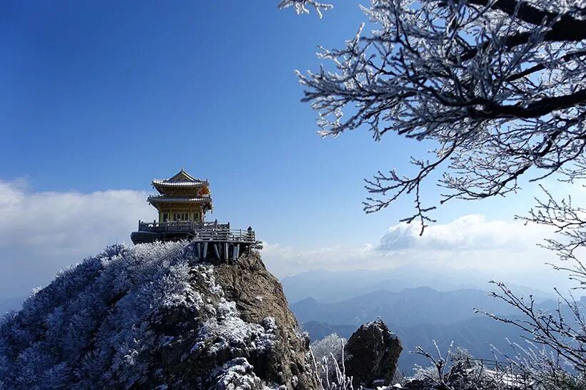 老君山古号景室山,取八百里伏牛山美景集于一室之意,因道家始祖老子归隐修炼于此,后更名为“老君山”