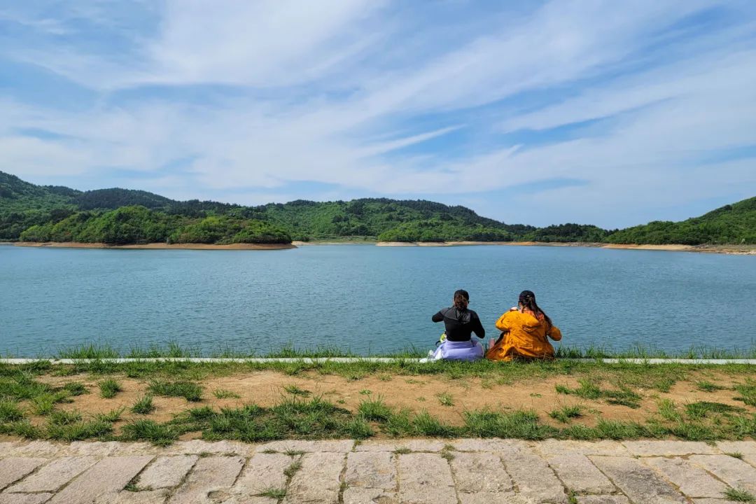 早上07:45,打铁关地铁站A口出发,车上相互认识,领队介绍行程,一路欢声笑语,9:30左右抵达临安桃花溪上山起点,队伍热身。我们将要走的吴越古道升级版线路,临安境内穿越线。精华路段约12公里。一路古道石板台阶,途径塘岭、佛堂到达千顷关,如今古城墙已成残骸,让人唏嘘不已。11:30抵达浙西天池——千顷塘水库。天池海拔1110米山顶,池面面积567000平方米,湖水清洌幽蓝,水天一色,四周山峦缓伏,视野开阔,是国家一级保护动物梅花鹿的主要栖息地。中午天池边休息路餐。