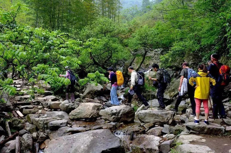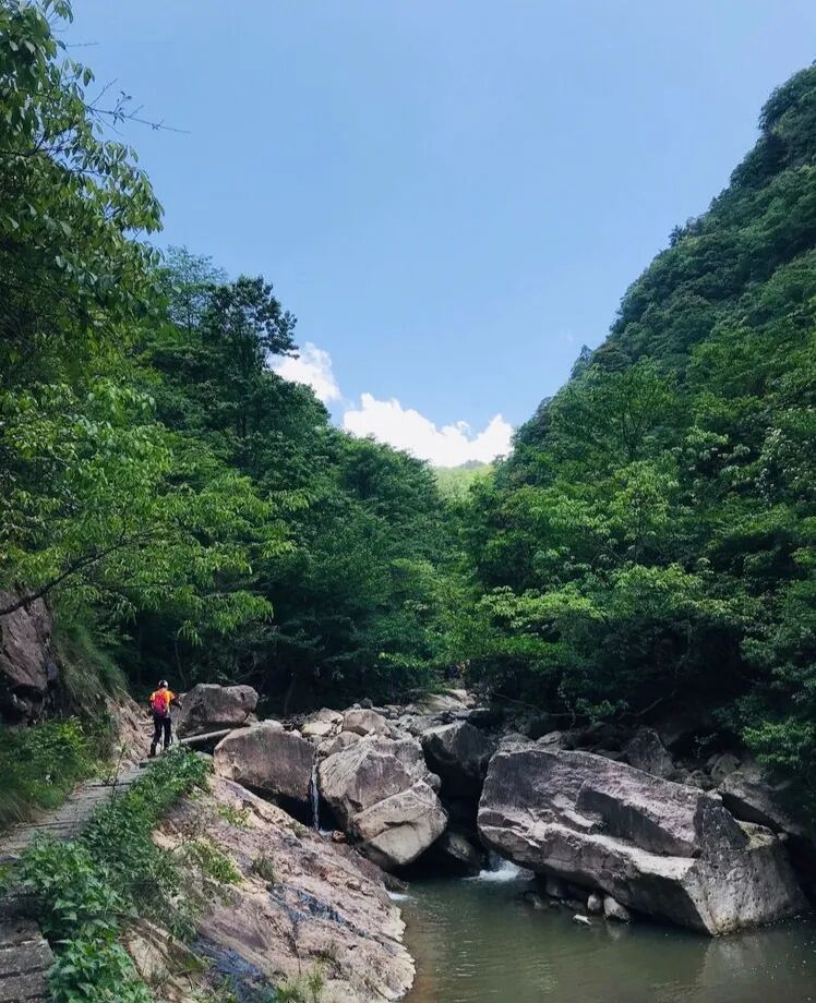 下午环线下撤,天龙峡谷,沿途溪水潺潺,清澈见底,温度适宜可嬉水,约12公里,穿越线,全程不走回头路,此时,大巴已经在穿越终点农家等候多时,大家吃个饱饱晚餐,立马返杭,大家意犹未尽,期待下次活动再见~