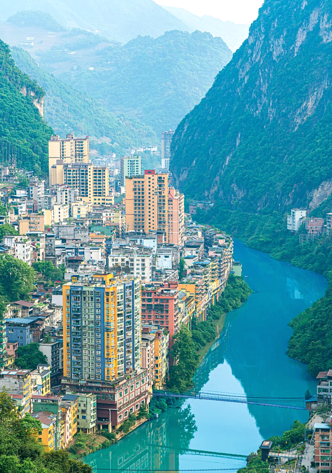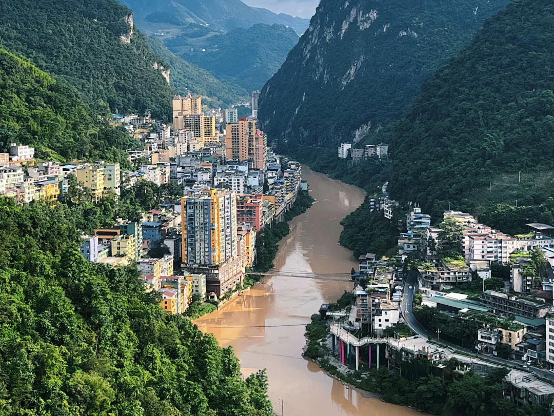 适时出发,前往宜宾,途径【盐津县】,然后在领队带领下,大家可以步行感受堪称“一线城市”的独特魅力啦。新村大桥(吊桥)以及老县城中段,都是很好的网红拍摄地点。