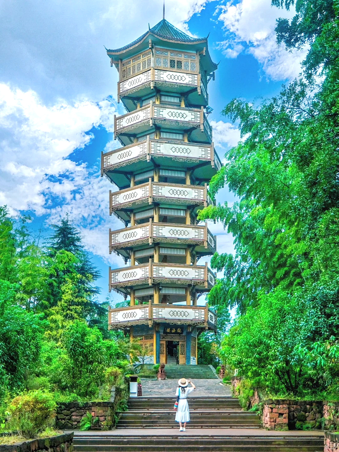 翠甲天下的蜀南竹海,共有八大主景区两大序景区,我们选取其中的精华景点进行游玩。先前往【拜寿台】08奥运会取景地,游玩【忘忧谷】、【竹海博物馆】,随后漫步在【翡翠长廊】,两旁密集的老竹新篁拱列,遮天蔽日,形成一幅绝美的画卷,感受竹林的清幽与宁静;随后登上观【龙吟寺】以及【观海楼】,这里是俯瞰整个竹海的绝佳位置,可以将浩瀚的竹海美景尽收眼底,俯瞰万顷竹海的壮阔景致;接着前往【天宝寨】和【仙寓硐】,探秘悬崖栈道,观看悬崖壁上的寺庙佛像,和祈福的飘带配着红色崖壁,这2个点挨着,仙气缥缈,风景绝美。