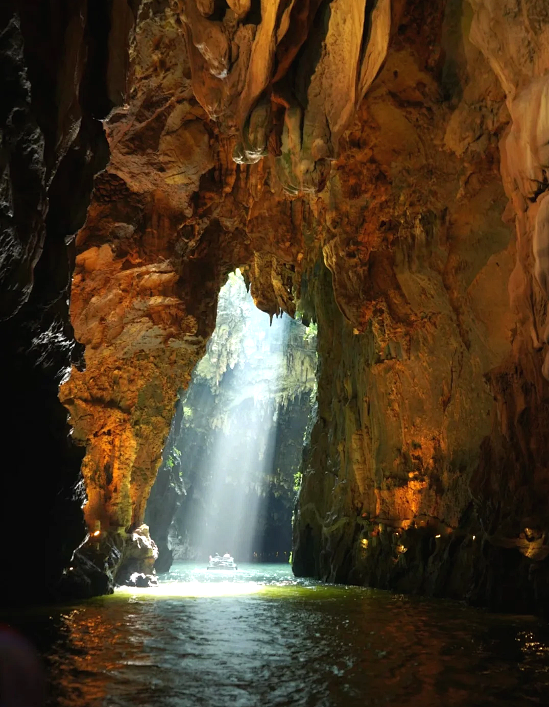 早餐后游览【九洞天风景区】,九洞天以其壮观的喀斯特地貌、奇特的溶洞景观和丰富的自然生态资源而闻名。景区内九个巨大天窗形成的“九洞天”景观尤为独特,乘船或步行游览都能深刻感受大自然的鬼斧神工。一个景区,集纳了“瀑布”、湖泊、高山、岩洞于一体,叹为观止,我们会水路乘船游览九洞天,这是必体验的精华部分,轻舟慢浆,随波逐流,九天瀑布,凉爽舒适,石廊通道。