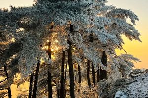整片的黄山松枝变成琼枝玉树,一片晶莹