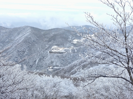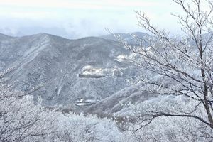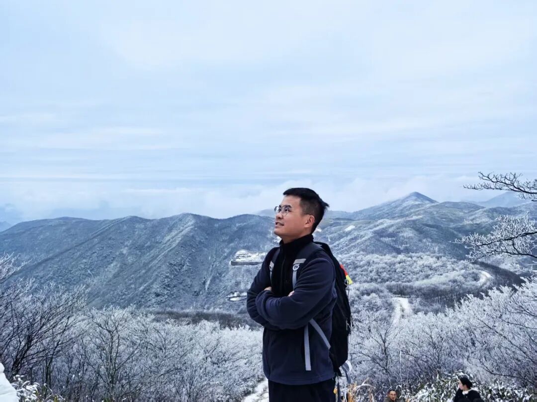 12:00左右,找个风景秀丽的地方集体午餐,稍作休整;13:00继续出发,沿着天目山山脊防火道抵达海拔1506米桐杭岗山顶,由于地势海拔高,可远眺整个天目山白雪皑皑,山舞银蛇的绝美风光;