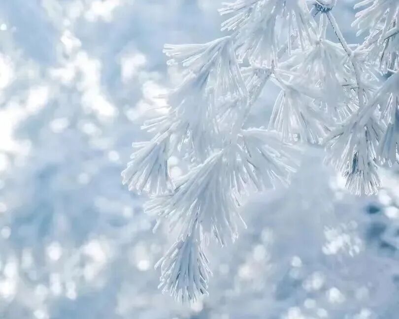 雾凇,非冰非雪。是由于雾中无数零摄氏度以下而尚未凝华的水蒸气随风在树枝等物体上不断积聚冻粘的结果。雾凇轻盈洁白,附着在树木物体上宛如琼树银花,清秀雅致。