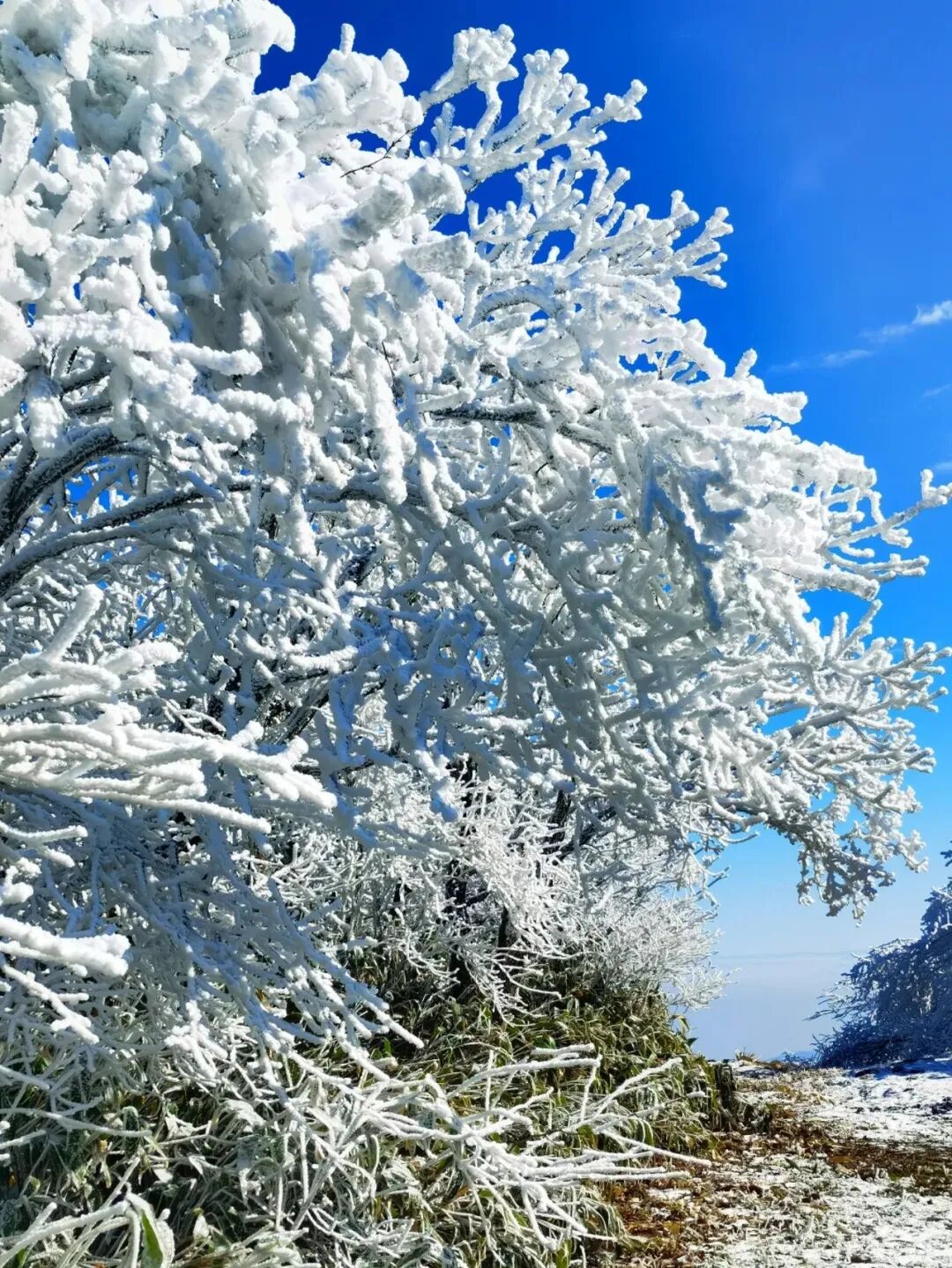 桐杭岗以其独特的雾凇景观成为了一幅动人心魄的自然画卷