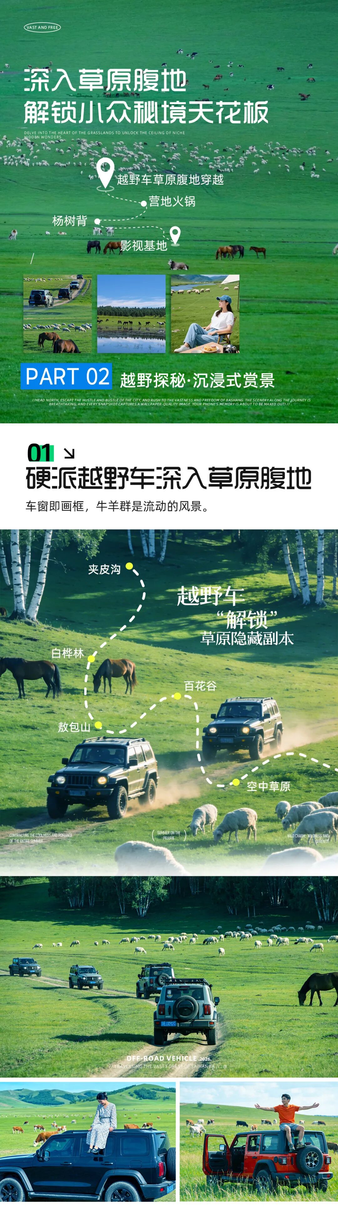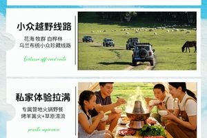 ·上午越野穿越:换乘当地牧民越野车穿越草原腹地,探访“夹皮沟”白桦林、“敖包山”祭祀遗址、“空中草原”360度观景台,途经“百花谷”识野花草药。
