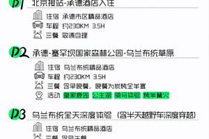 注:暑假7月-8月,恢复原价,每周六发团,保成团,费用2580/人,本活动支持定制,定制可联系驴行客服乐乐 17376500805(VX同号)