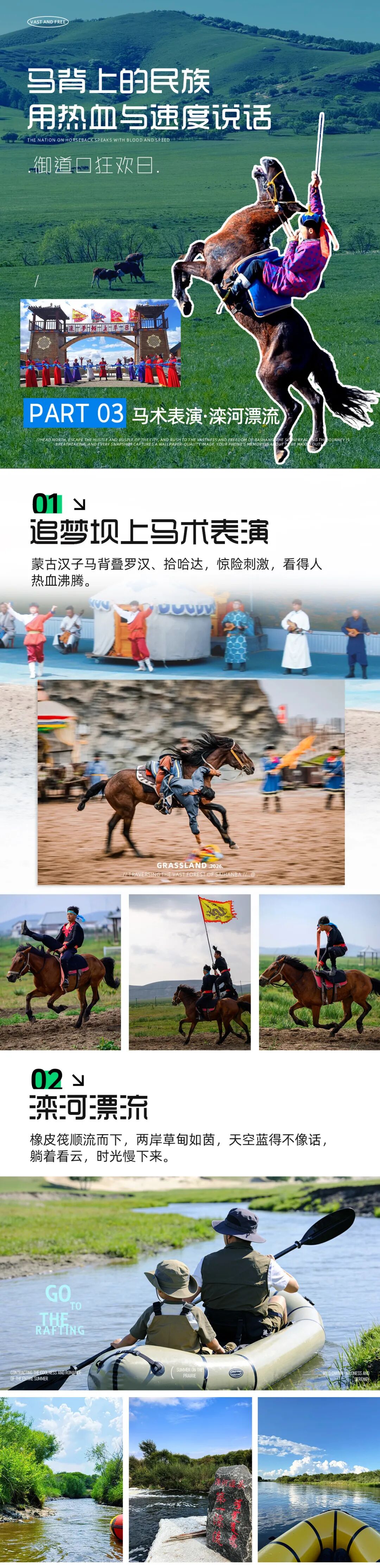 ·草原漂流:随后在滦河源头体验草原漂流,在激流中感受“塞北小三峡”的壮丽风光,沿途穿越白桦林峡谷,需穿戴救生衣并紧抓安全绳;