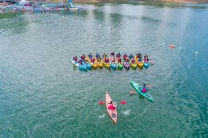 11:00 左右,我们到达皮划艇基地,午餐在这里解决(费用AA或午餐自理),午餐后稍作休息,开始玩起皮划艇,亲触千岛湖的水,在湖面上常玩(2-3小时)