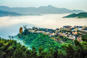 木梨硔,硔音同红,木梨硔位于安徽省黄山市休宁县溪口镇境内,坐落在黄山余脉一处山脊之上,与休宁境内有名的五龙山遥相呼应。村庄三面悬空,长年有云海景观出现,木梨硔也因此得名。云海中的木梨硔犹如仙境一般,被评价为天上蓬莱境,人间木梨硔。