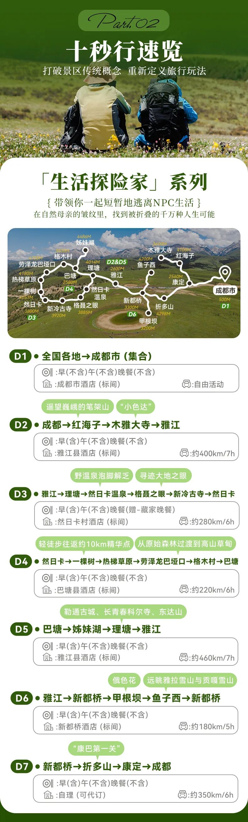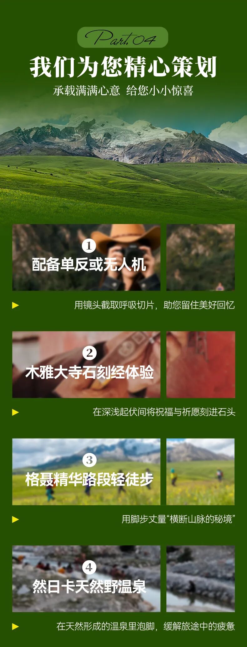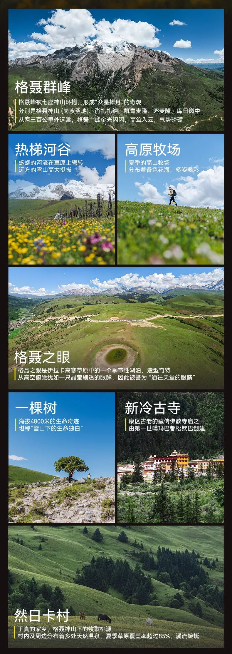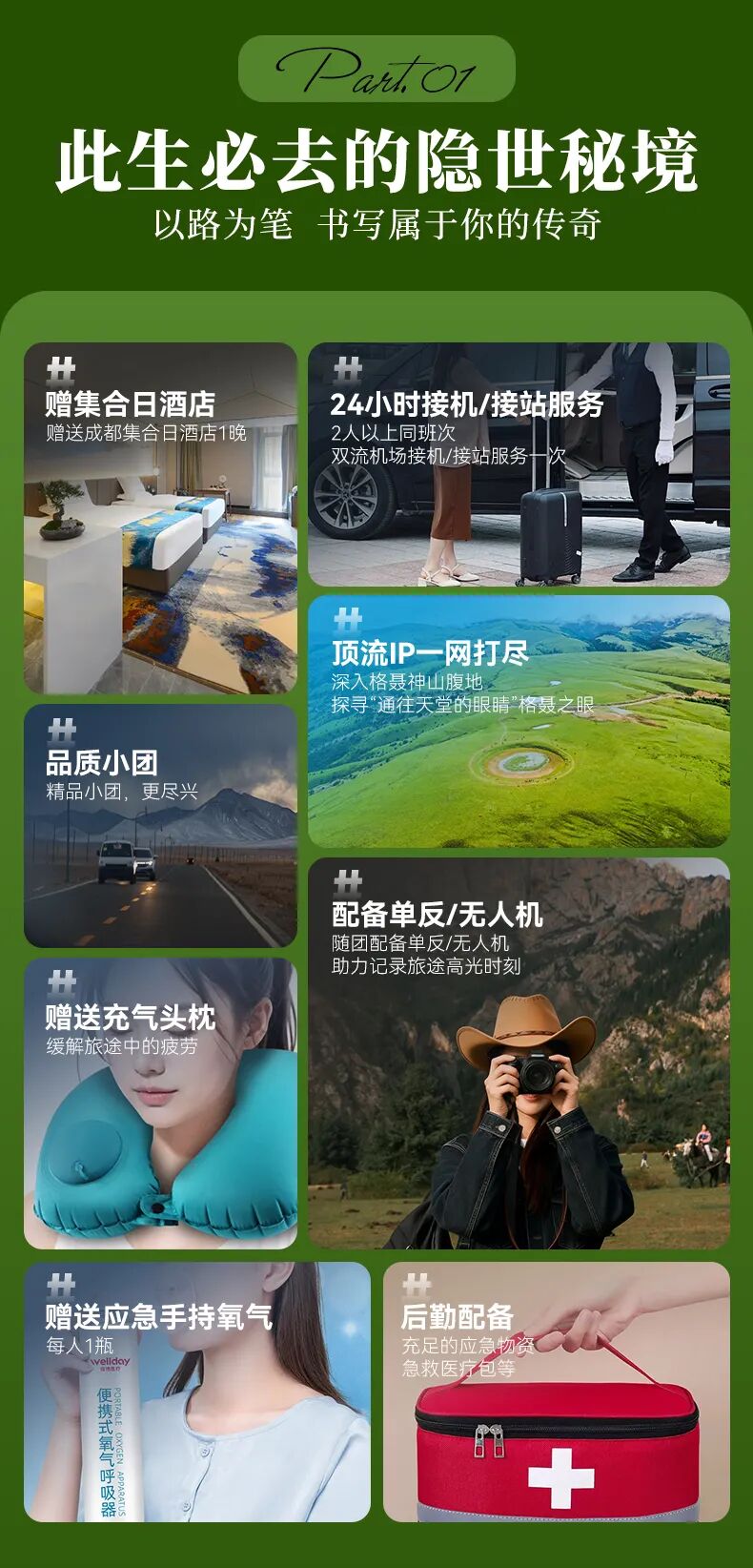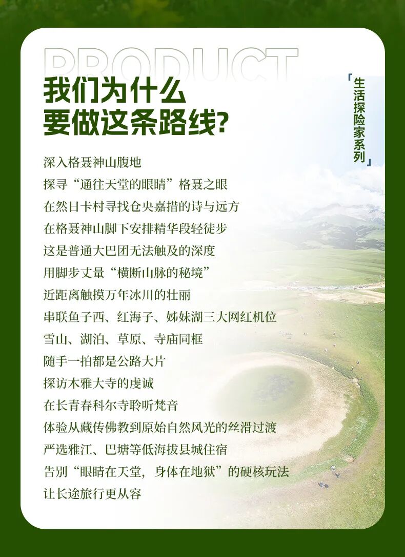 格聂活动!保成行!请先报名,客服确定团期余位后,再购买大交通 去程:5.30 全天成都集合 回程:6.5 最后一天成都返程,川西路况较差,到达时间较晚,建议留住1晚