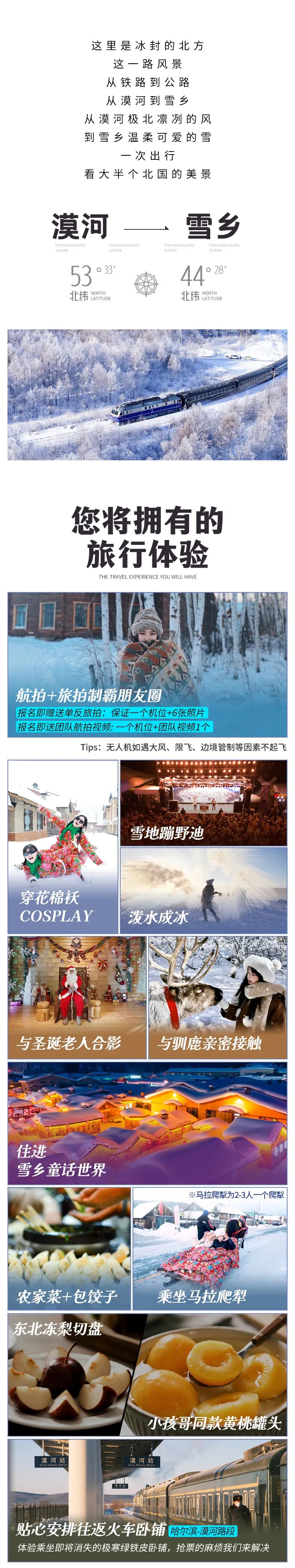 3、火车条件有限,敬请谅解。参考车次:K7039(17:18/次日10:07)或K7041(18:05/次日12:23)或 K5174(12:20/次日08:28)或K5171(12:55/次日08:28)具体车次和时间以出票为准。4、哈尔滨冬季打出租车较为困难,一般都是拼车,大家出去玩的时候建议使用网约车软件打车。