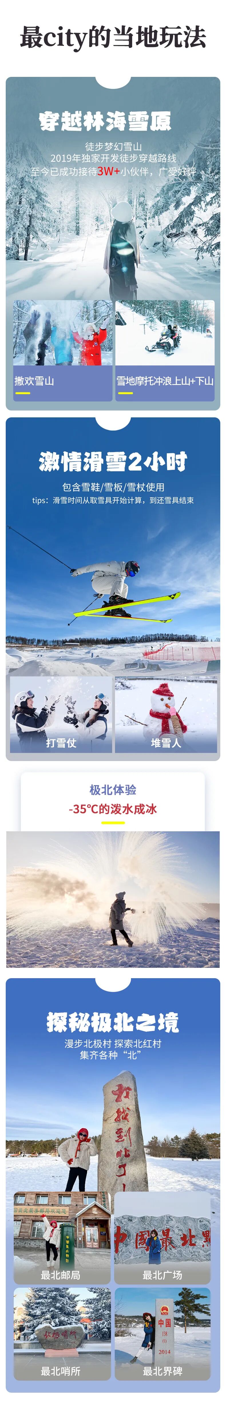 哈尔滨-亚雪公路-(280km,约5小时)漫步梦幻雪山-雪地摩托冲浪上下山-(30km,约0.5h)雪乡夜景-雪地蹦迪