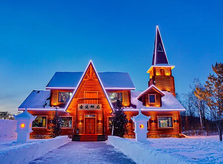 北红村-泼水成冰-马拉爬犁-音乐公路-鄂温克驯鹿园-圣诞村-滑雪2小时-北极村(100km,车程约2小时)