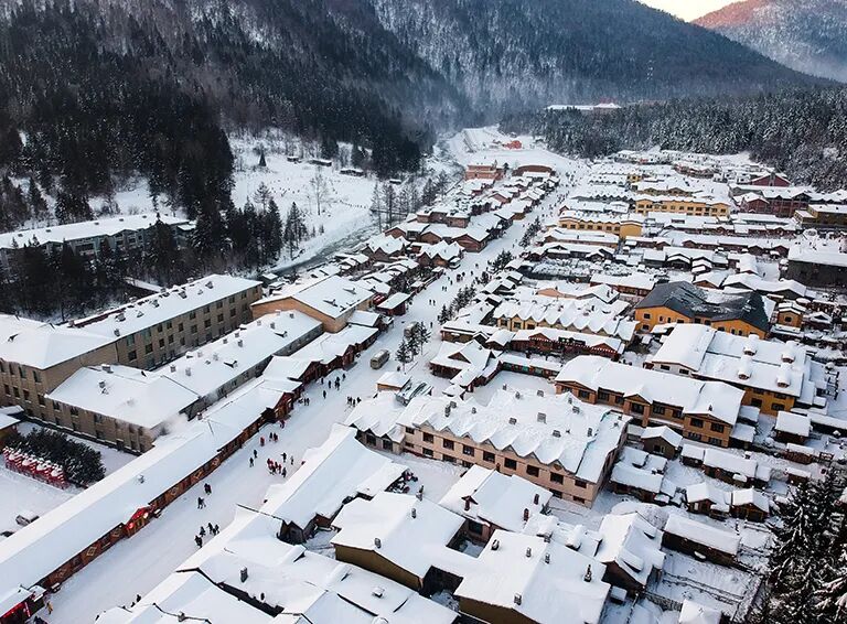 17:00 随后雪乡内自由玩耍,可以走走雪韵大街,欣赏雪房子,寻找雪蘑菇,还可穿上乡村特色的花棉袄COSPLAY。东北冬季日落时间非常早,大约四点多的时候天就已经黑了,可以漫步棒槌山栈道,俯瞰【雪乡夜景】红红的灯笼映在洁白的雪地上。也可参加雪乡景区举办的雪地蹦迪晚会(如遇景区原因或大风等天气原因不举办不退费用)。