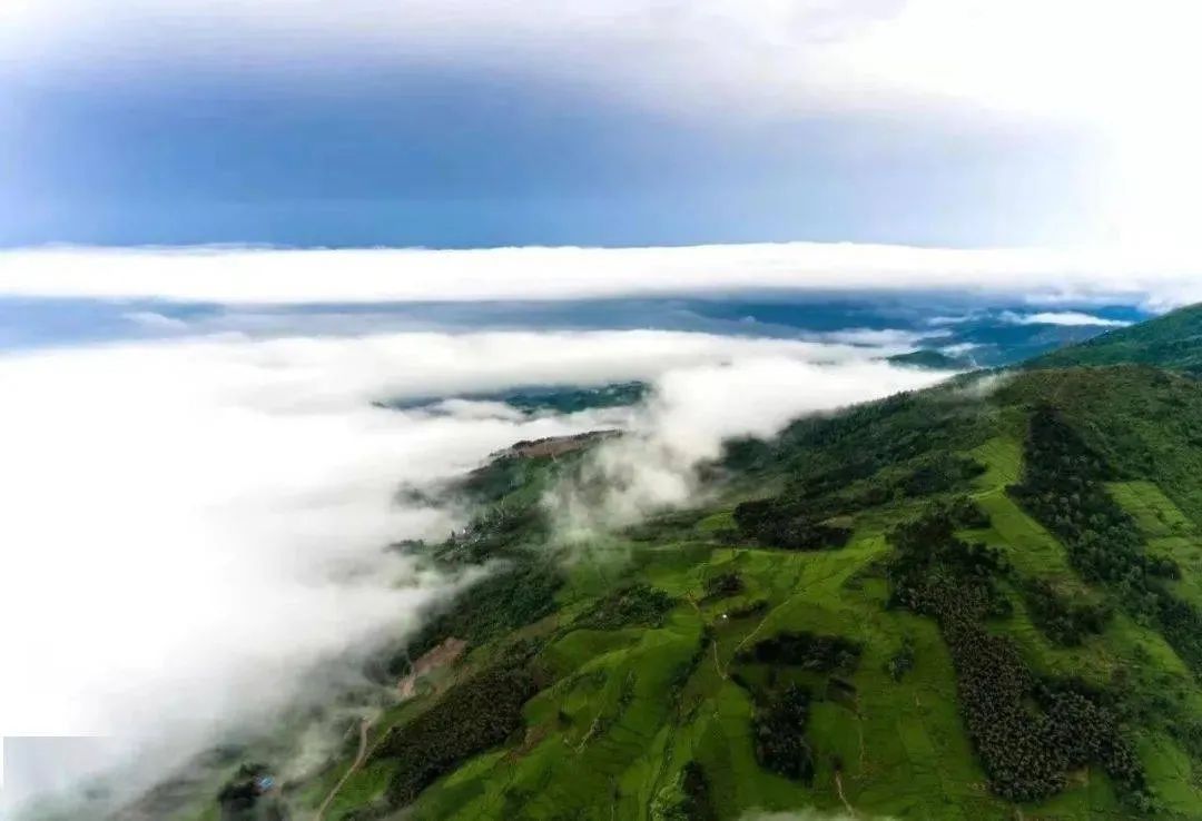 山上有漫山遍野的芦草,云雾缭绕