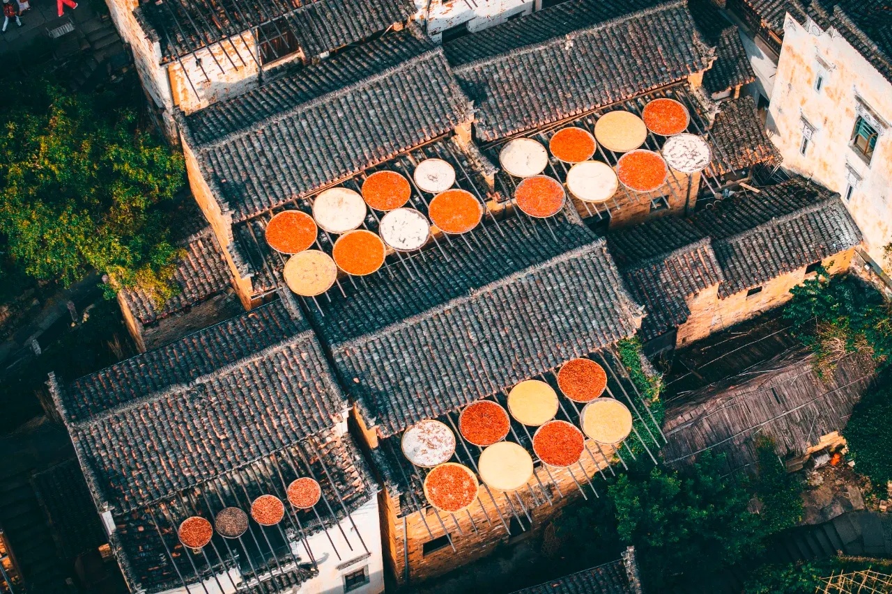都说婺源的篁岭晒秋是中国各地秋色中最为浓墨重彩的一笔,位于安徽省黄山市歙(shè)县深渡镇的阳产村,同样也有着婺源篁岭类似的晒秋美景。