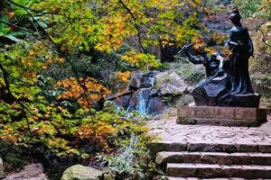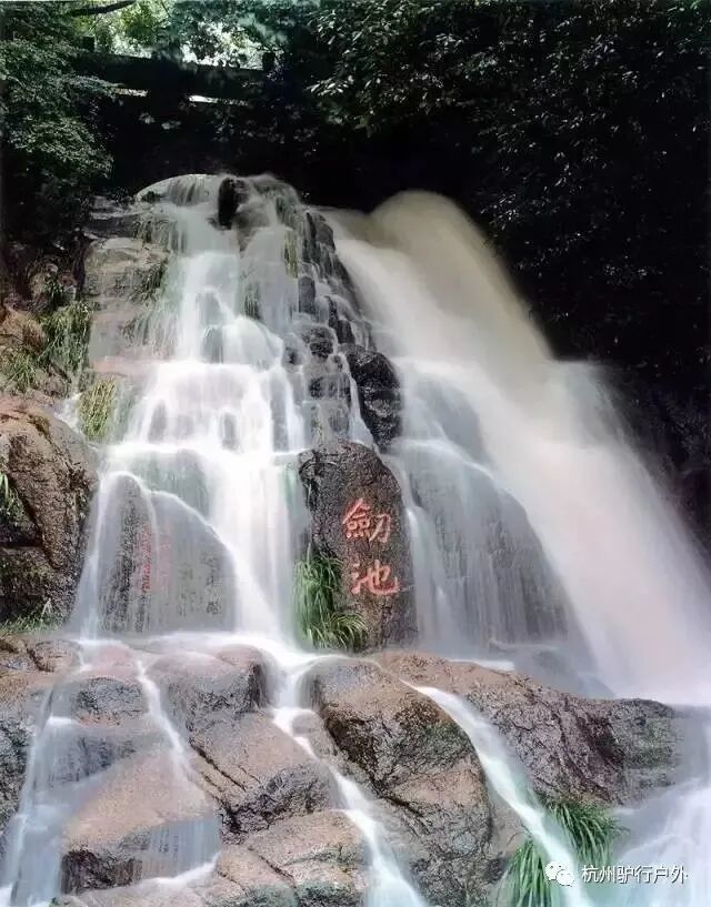 大约14:00 下到芦花荡公园。穿越荫山街,到达剑池。剑池常年不断的小瀑布夏天来的话非常清凉,在此留影后下撤。我们下撤的路会比较野,一路小溪相伴。体现大家团队精神的时候到了,需要大家相互协助!