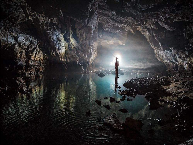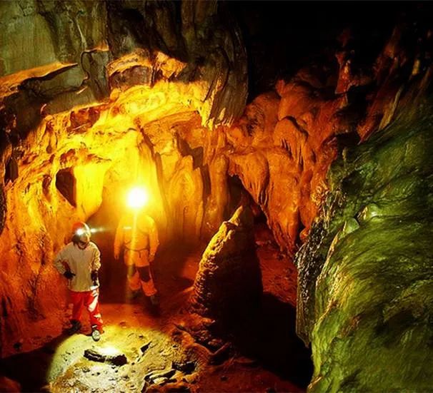胆战心惊地向深处探险,听到地下河流隐隐流淌,声音在岩壁间来回震动,空灵而遥远。眼睛适应黑暗,看到奇异瑰丽、美轮美奂的喀斯特地貌,你不得不感叹大自然的鬼斧神工,一滴一滴的熔岩,耐心地用千百万年的时间聚沙成塔,造就出一个色彩纷呈的绮丽世界。