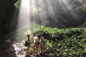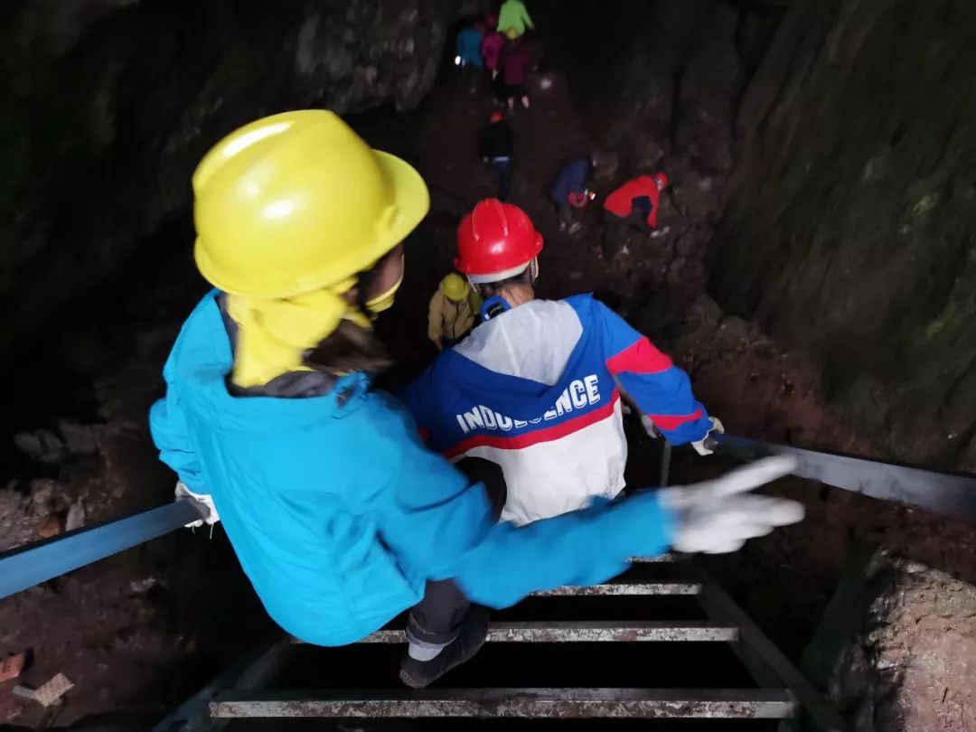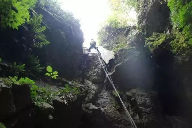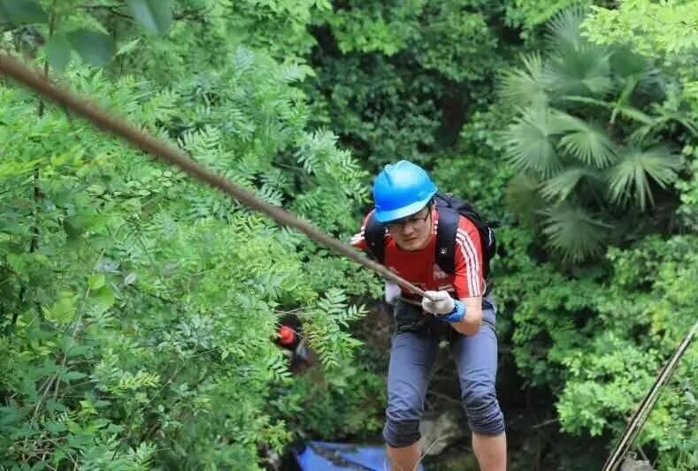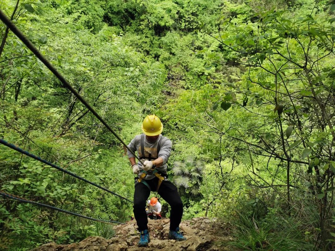 穿戴好速降探洞装备,在教练带领下,开始精彩的绝壁岩降,在教练的指导下从40m高的自然崖壁岩降,化身蜘蛛侠。