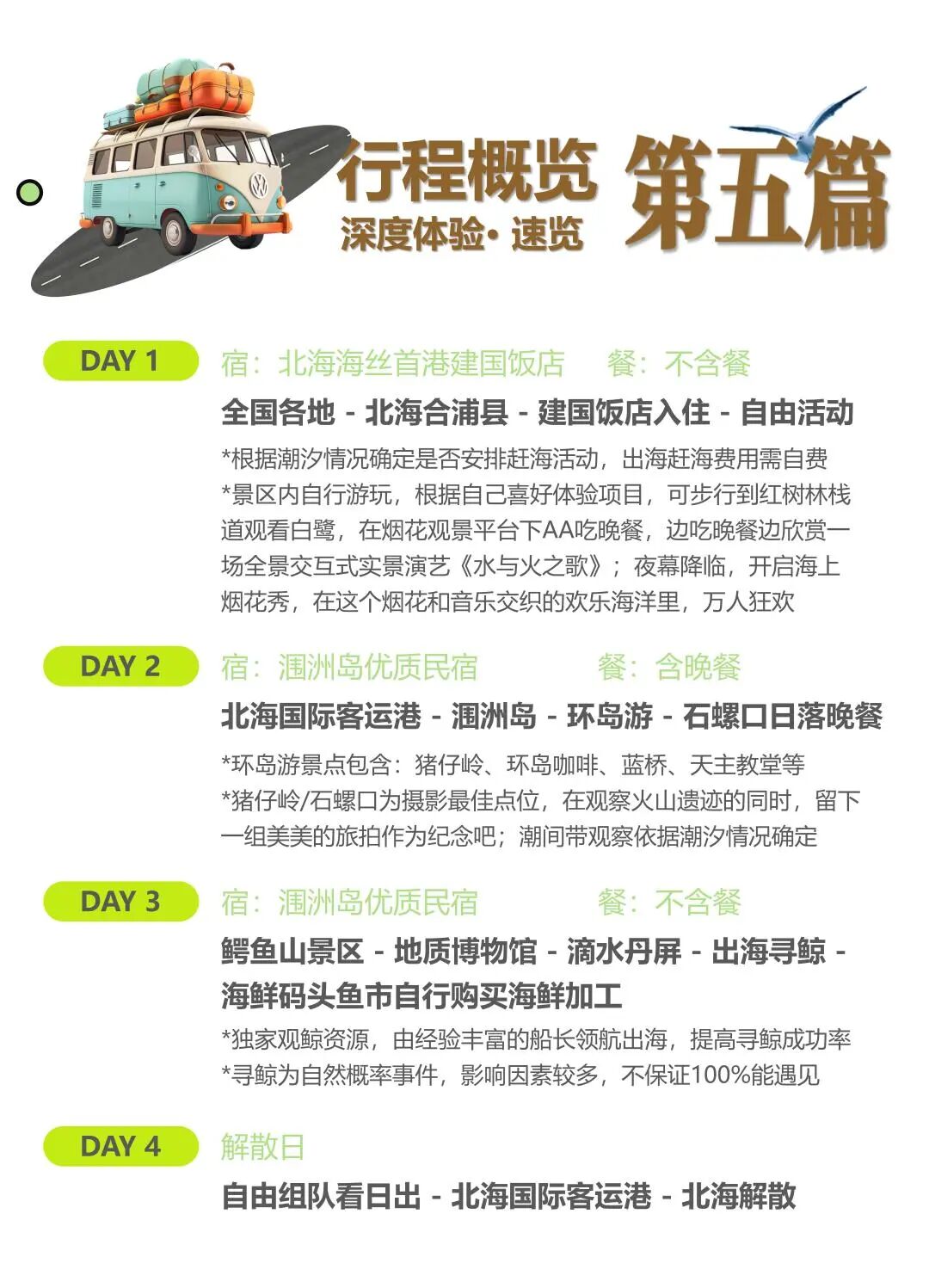 1.涠洲岛经常受大风影响导致停航,出发前2天如接到通知不能上岛,报名团费全部退回,不作赔偿,敬请理解!