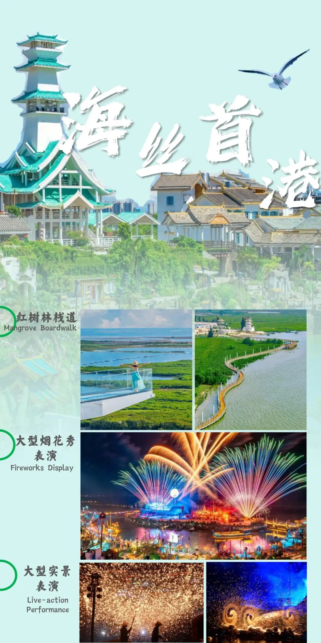 19:00 晚上的海丝首港最是热闹,在这里看一场全景交互式实景演艺《水与火之歌》,一场大自然的较量与文化的碰撞;