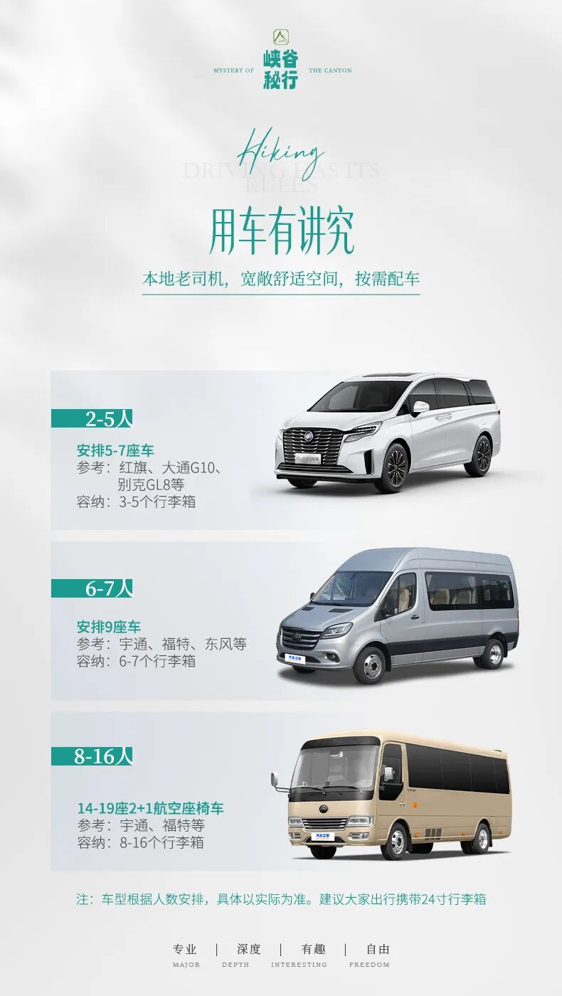 6-7人安排 九座商务车(司机+单独领队)