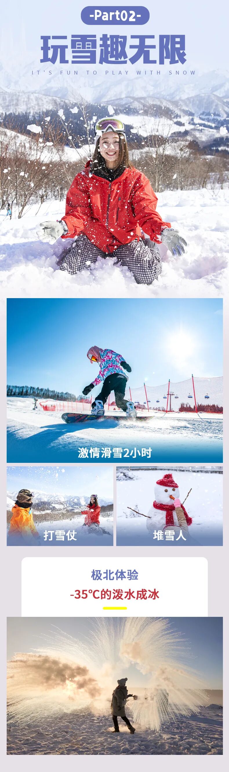 13:30换上我们提供的雪鞋、雪板、雪杖等滑雪用具,开始我们刺激的【滑雪体验】。当您从山坡平稳的滑下来的那一刹那,瞬间有了征服大自然的感觉!