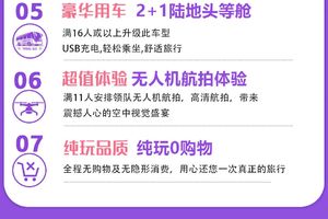 【超值赠送】:所有团期人数达到11人派领队带无人机航拍,分享旅途风景图片或视频,体验不一样的旅行!