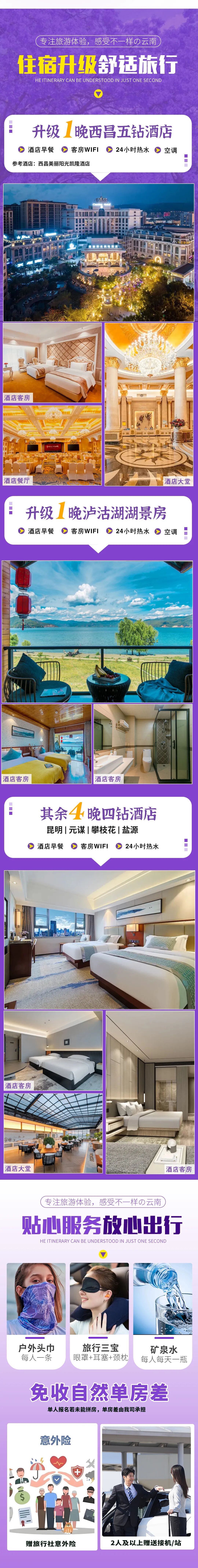 【住宿升级】:一晚五钻酒店(西昌)+4晚四钻+1晚泸沽湖湖景房领衔的舒适住宿标准